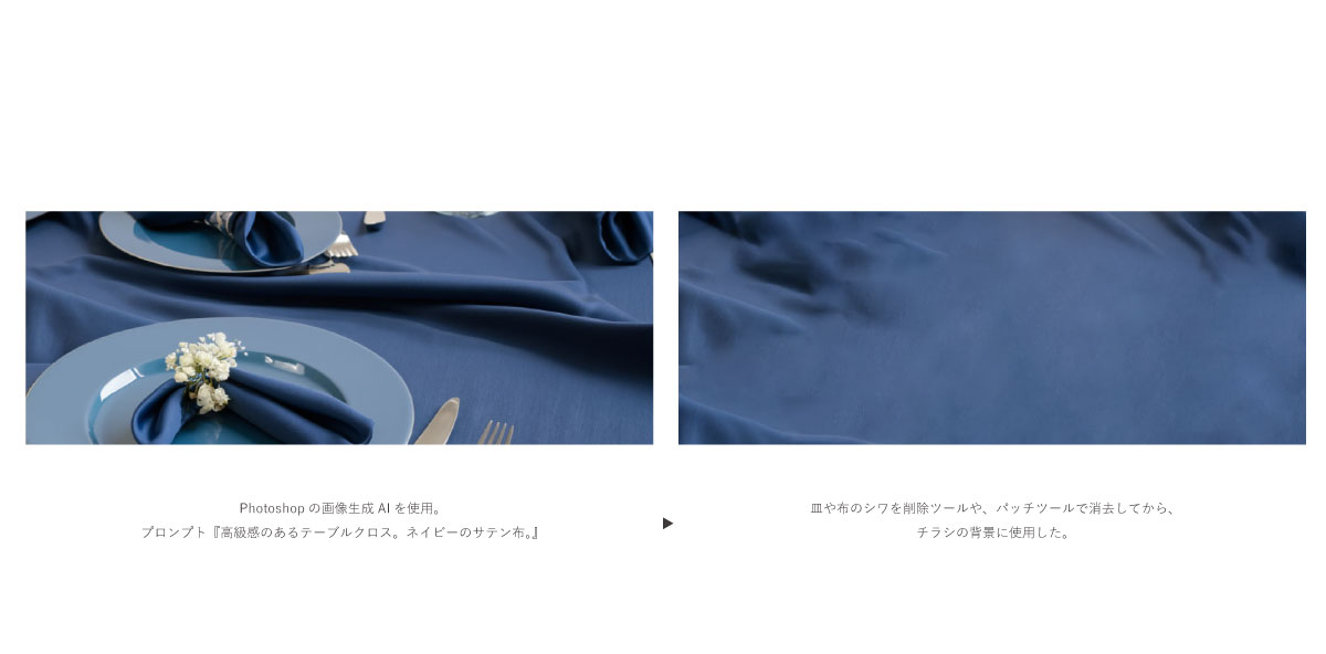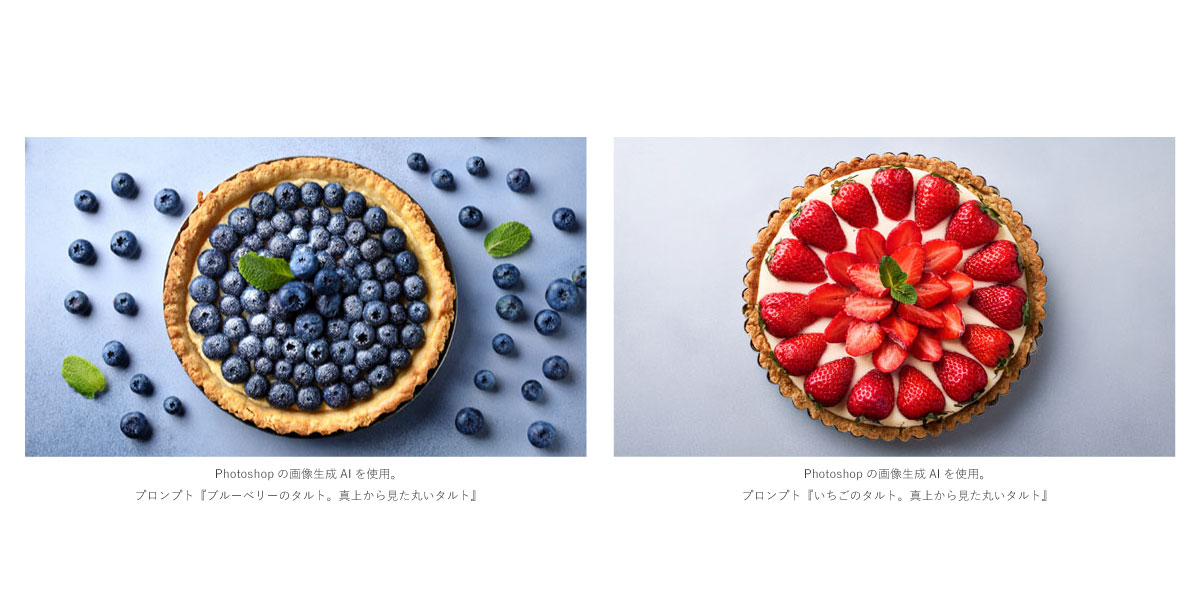 チラシに使用するケーキや、背景の素材はPhotoshopの生成AIで作成しました。